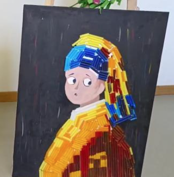 上面这张“世界名画”《戴珍珠耳环的少女》,如果我不说,你看得出来是用吸管制作的吗?