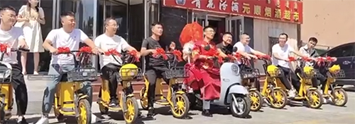 近日,呼和浩特一个小伙组团骑着小电车去迎亲的视频刷屏社交媒体,引来无数网友点赞围观。