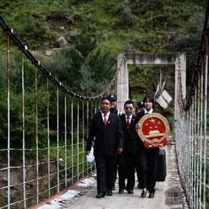 青海省果洛藏族自治州班玛县人民法院巡回法庭成员前往班玛县灯塔乡班前村提供法律服务(2021年8月7日摄)。新华社记者 张龙 摄