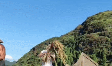 看到有人在艰难地拉货上坡;