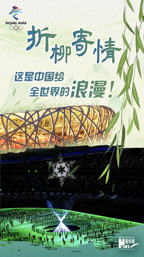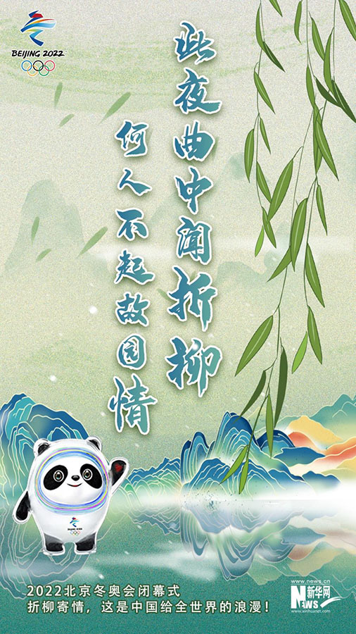 2022年2月20日晚的北京冬奥会闭幕式上,人们手捧“柳枝”登上舞台,象征着依依惜别之情。