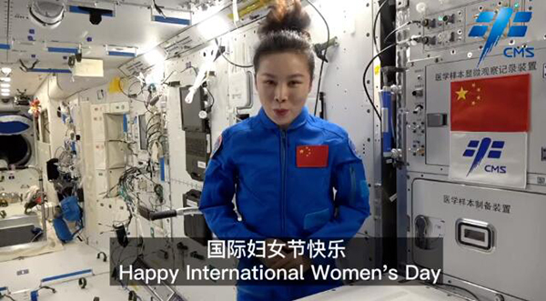 在“三八”国际妇女节到来之际,应联合国(日内瓦)广播电视中心邀请,正在太空执行飞行任务的中国女航天员王亚平在空间站向全球女性致以节日祝福。