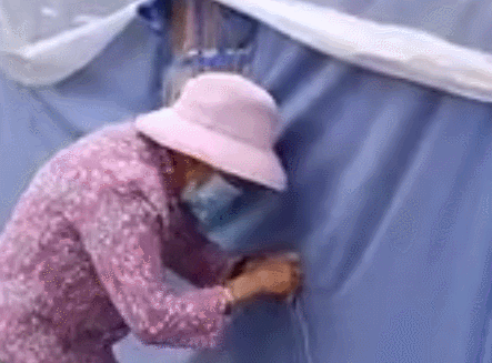 视频显示,在甘肃白银一小区执勤点,一位老奶奶看见执勤帐篷破损,便回家取来针线,将裂开缝隙的帐篷缝合,针脚细密又整齐。