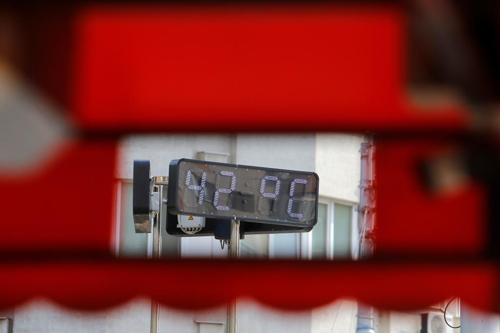 7月25日,罗马尼亚布加勒斯特街头的一个温度指示牌显示气温达到42摄氏度。新华社发(克里斯泰尔摄)