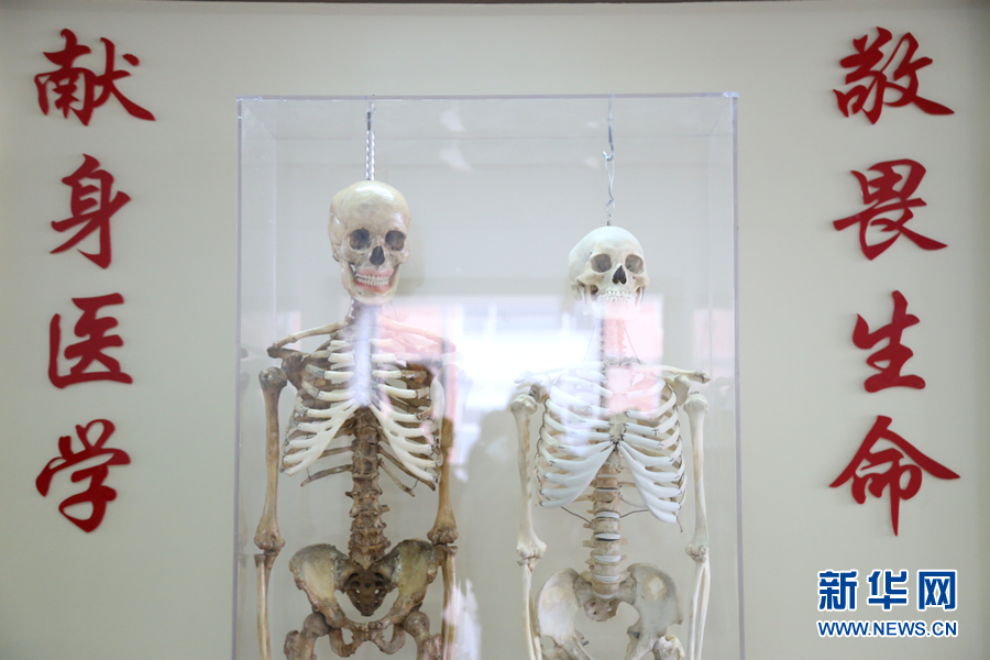 我们不曾忘记,“浪漫至死”的李秉权、胡素秋夫妇。他们是新中国成立后的首批医师,二人先后将遗体捐献给了昆明医科大学,供教学使用。他们的骨骼标本被安置在一起,骨架两旁写着“献身医学、敬畏生命”。