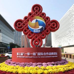 这是2023年10月17日在北京国家会议中心附近拍摄的“一带一路”国际合作高峰论坛景观布置。新华社记者 陈斌 摄