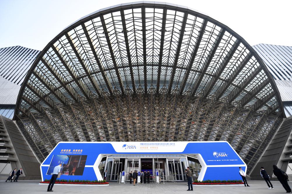 2023年10月30日,参会嘉宾步入长沙国际会议中心。当日,以“全球发展 共享安全”为主题的博鳌亚洲论坛全球经济发展与安全论坛第二届大会在湖南长沙开幕。新华社记者 陈振海 摄