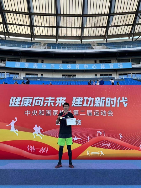 10月22日,中央和国家机关第二届运动会在国家奥林匹克体育中心体育场举行。新华网员工代表新华社参加中年甲组跳远比赛,在赛场上奋勇拼搏,最终取得了第一名的好成绩。