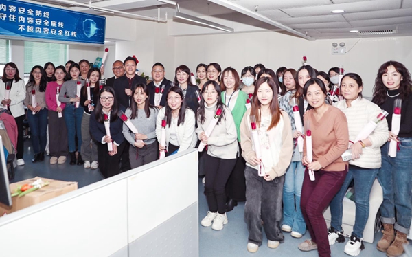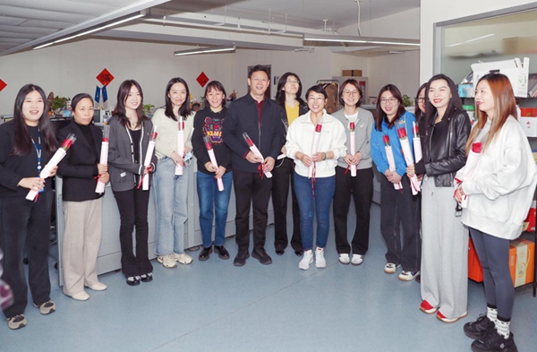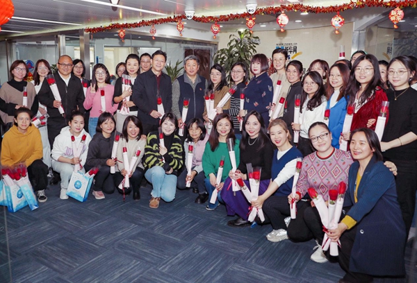 3月8日,储学军同志等公司领导,及工会、妇委会向公司女员工送上鲜花等慰问品,向大家致以节日问候。