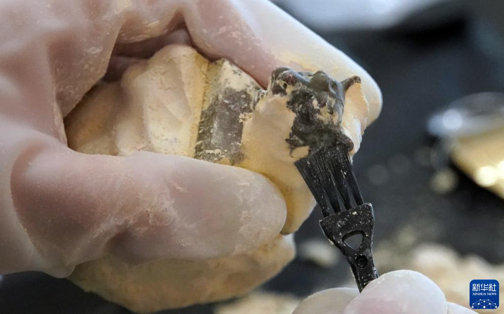 工作人员演示“考古盲盒”的开盒过程(2020年12月8日摄)。新华社记者袁月明摄