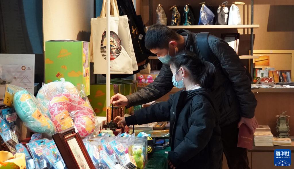 游客在河南博物院文创区选购文创产品(2020年12月8日摄)。新华社记者袁月明摄