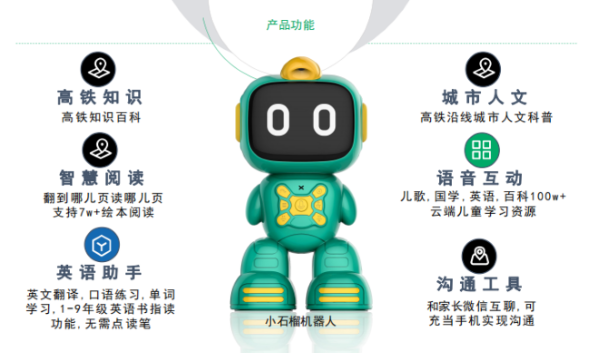 康之旅高铁科普机器人融合趣味高铁科普知识百科+高铁沿途城市人文百科+ AI识别儿童高铁绘本阅读,解决儿童在高铁旅途中不孤单,并学习到更多跟高铁相关的知识,别于市上陪伴机器人产品。