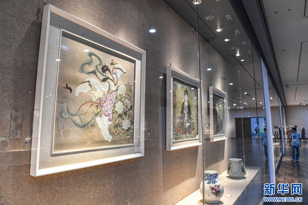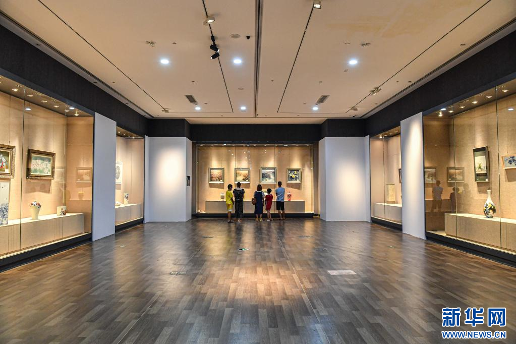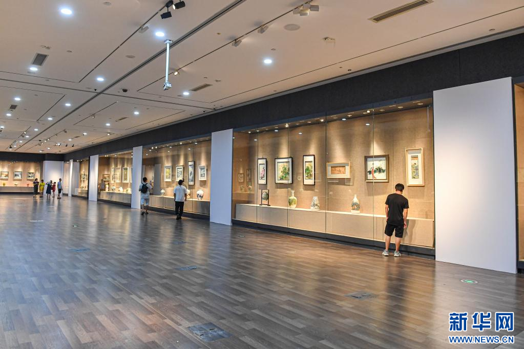 7月18日,观众在位于海口的海南省博物馆观看景德镇陶瓷艺术作品展。新华社记者 蒲晓旭 摄