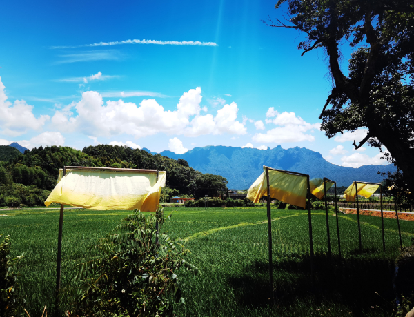 此次植染大地艺术周中,艺术家们以光泽县优美的自然环境和底蕴浓厚的人文建筑作为创作载体,以光泽丰富的染料植物以及可提取色素的莲蓬、茶渣、黑豆皮等农业废弃物为色彩之源,把植染艺术与自然之美有机的融合,将科学研究和时尚设计结合。