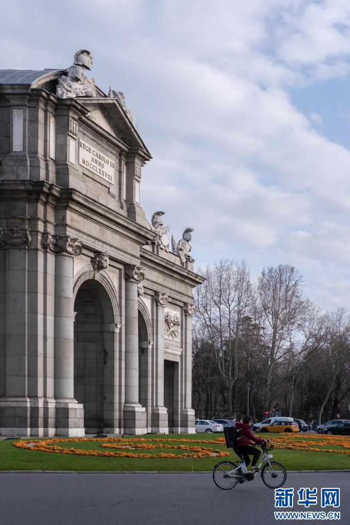 这是3月6日在西班牙马德里拍摄的位于普拉多大道的阿尔卡拉门。 新华社记者 孟鼎博 摄