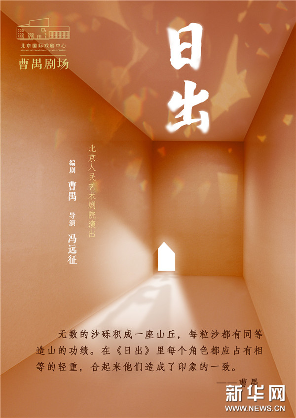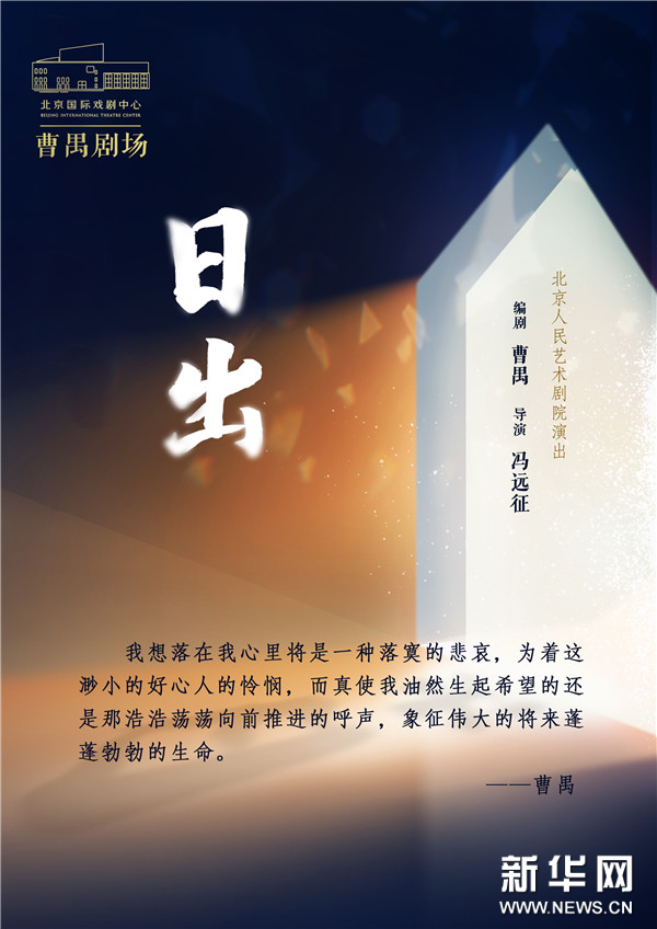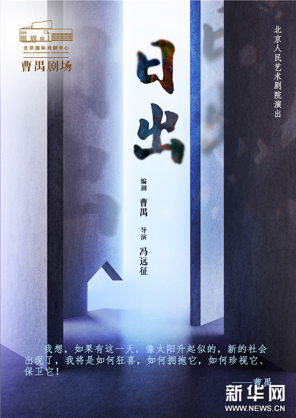 北京人艺历史上,曾有过四版对《日出》的演绎。北京人艺此次再将这部家喻户晓的作品进行新排并用来启幕新剧场,因为它不仅是人艺老院长、著名剧作家曹禺先生的代表作,还曾是上世纪50年代首都剧场建成后的开幕大戏。为向曹禺先生致敬,北京国际戏剧中心内的主剧场便命名为曹禺剧场。由曹禺作品《日出》开启新剧场大幕,让经典穿越时空,既表达了北京人艺对艺术的不断求索,也藉此赋予了经典永续的生命。