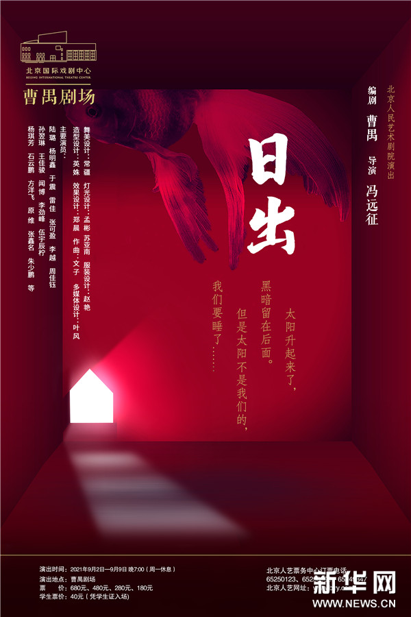 据悉,该剧将于8月24日正式开票,9月2日至9月9日演出7场。9月2日,北京国际戏剧中心曹禺剧场首揭面纱,届时观众将看到新剧场、新《日出》与新生代的全新碰撞,感受北京人艺舞台经典的永恒魅力。