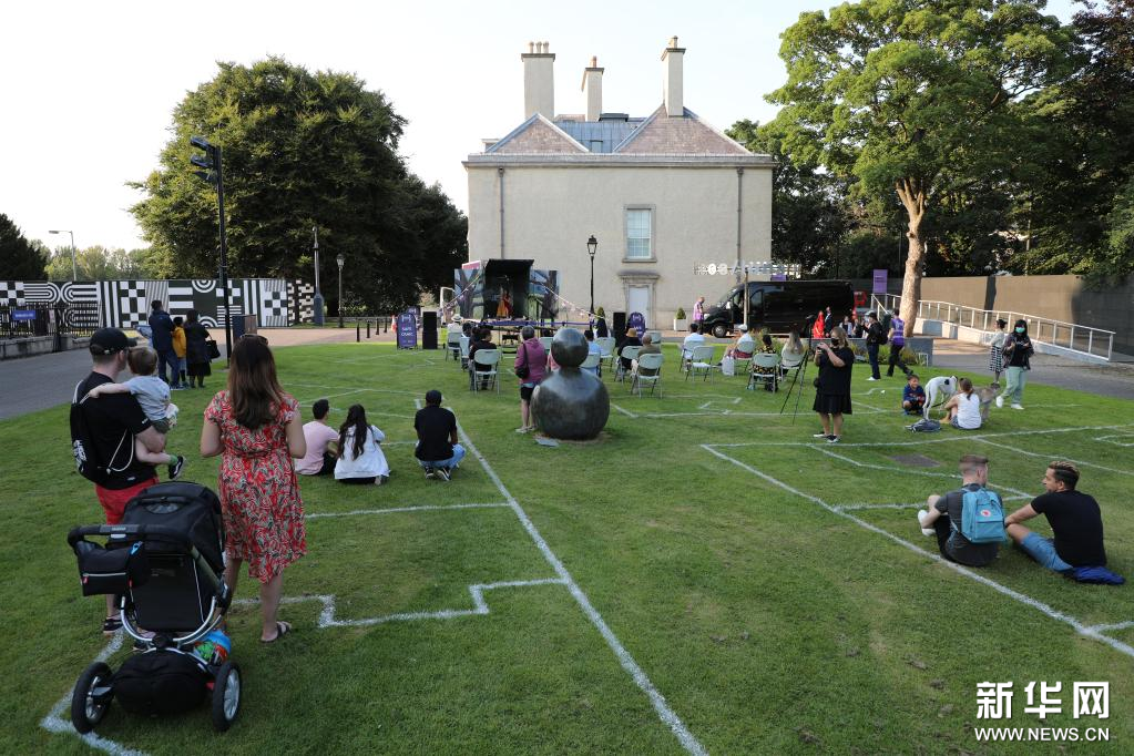 8月28日,人们在爱尔兰都柏林的爱尔兰现代艺术博物馆欣赏“中国文化路演”户外音乐表演。新华社发