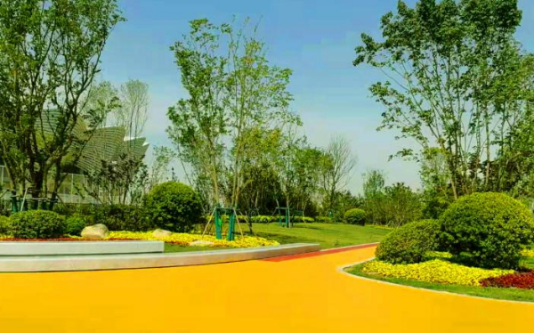 四季开花花不同、四季美景景各异。在街景式公园,春天来了赏樱花缤纷;夏天的时候,五颜六色的矾根、山桃草多彩鲜艳;到秋冬,红枫落到地下与黄色的地被互相渗透,特别适合打卡拍照。在植物造景上,以多品类、多层次、多色彩、多组团的植栽手法,用雪松、黄山峦等多种丛生植物,搭配美国红枫等大乔木、樱花等小乔木,加上山桃草、矾根等下层多彩地被,局部组团种植,形成特色突出的天然“丛林”景观。