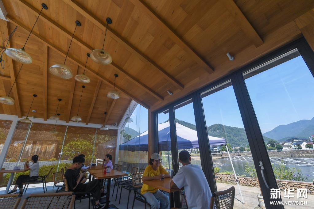 9月2日,游客在湖源乡龙鳞坝旁一家民宿内休憩赏景。新华社记者 徐昱 摄