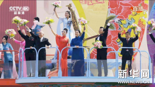2019年,庆祝中华人民共和国成立70周年大会群众游行中,鲁璐携箜篌登上“中华文化”彩车。(央视直播画面)