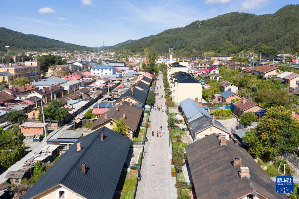 游客在横道河子镇游玩(9月15日摄,无人机照片)。新华社记者 谢剑飞 摄