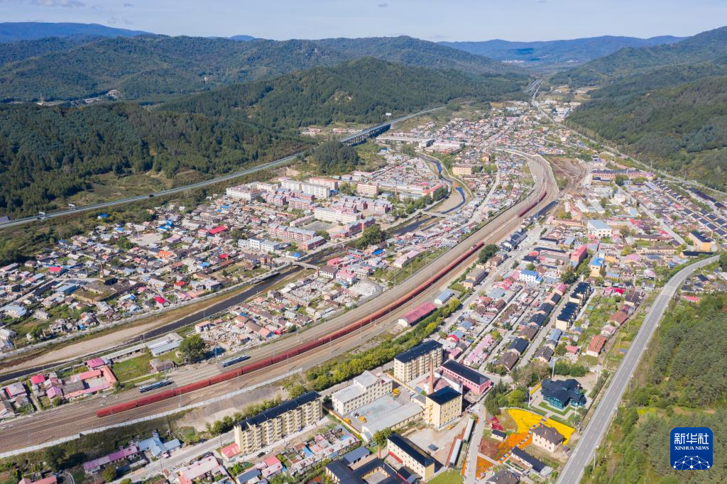 黑龙江省海林市横道河子镇一角(9月15日摄,无人机照片)。黑龙江省海林市横道河子镇始建于1897年,因中东铁路的修建而兴建,已有百余年历史。 全镇现有俄式建筑百余栋,中东铁路横道河子机车库、铁路大白楼、俄式木屋等被列入全国重点文物保护单位,2018年荣获联合国教科文组织亚太地区文化遗产保护奖。新华社记者 谢剑飞 摄