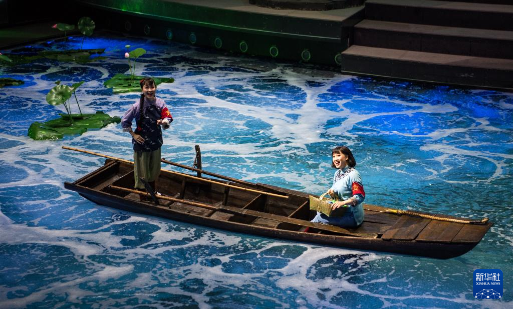 新9月25日,演员在演出歌剧《洪湖赤卫队》。 新华社记者 肖艺九 摄