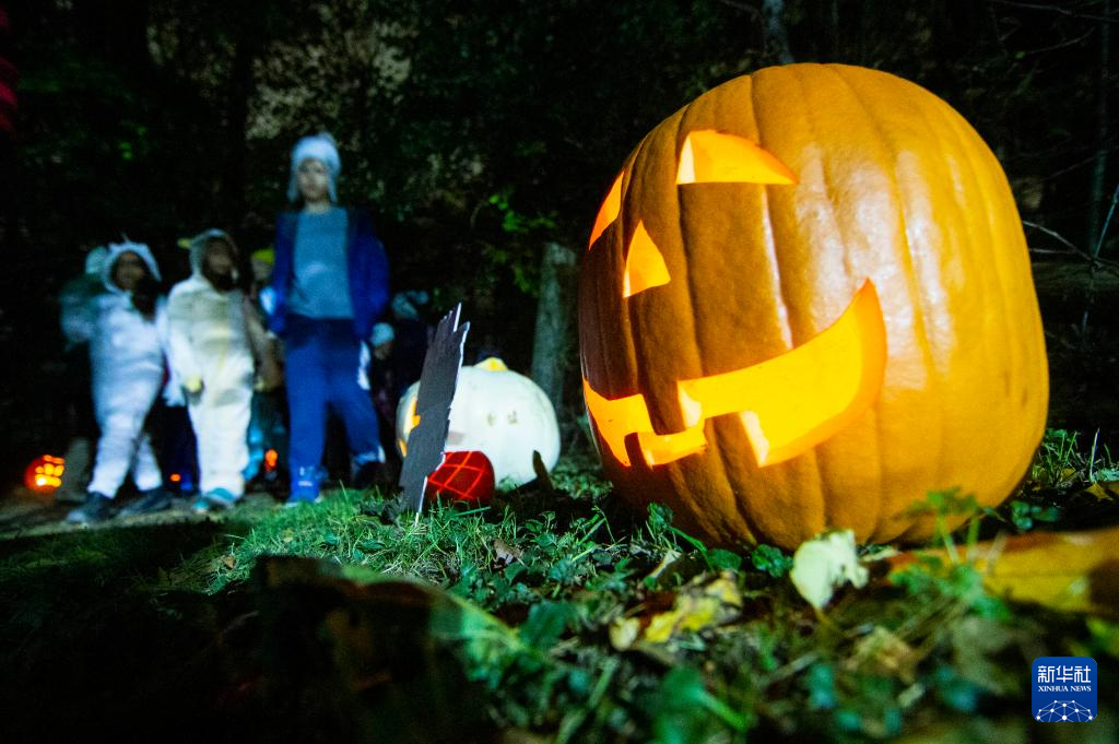 11月1日晚,人们在加拿大米西索加一家公园内参观点亮的南瓜灯。新华社发(邹峥摄)