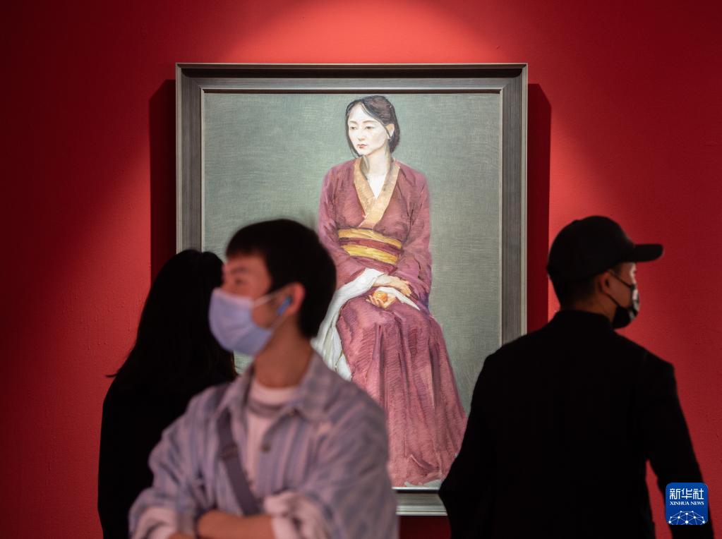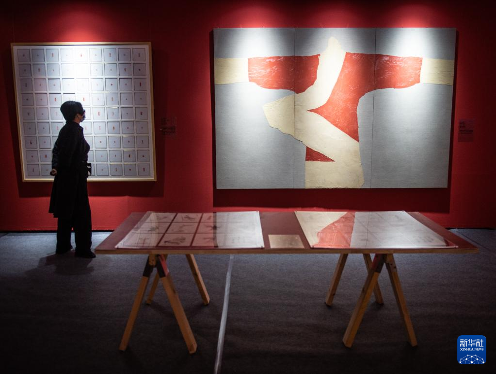 11月3日,观众在参观展览。当日,“楚汉观照”中国传统服饰文化研究与艺术创作展在北京服装学院开幕。展览展出了由北京服装学院40余名师生及特邀艺术家创作的60余套(300余件)作品,涵盖染织服饰、绘画、雕塑、漆器、竹编、玻璃、数字媒体等多种类型。展览将持续至11月15日。新华社记者 陈钟昊 摄