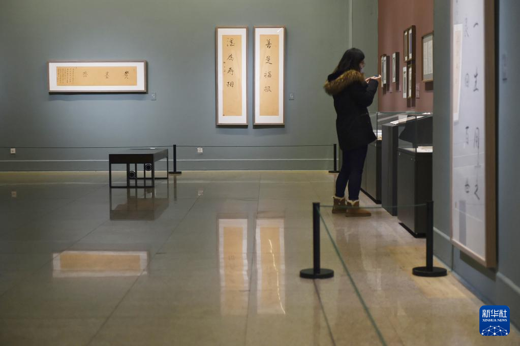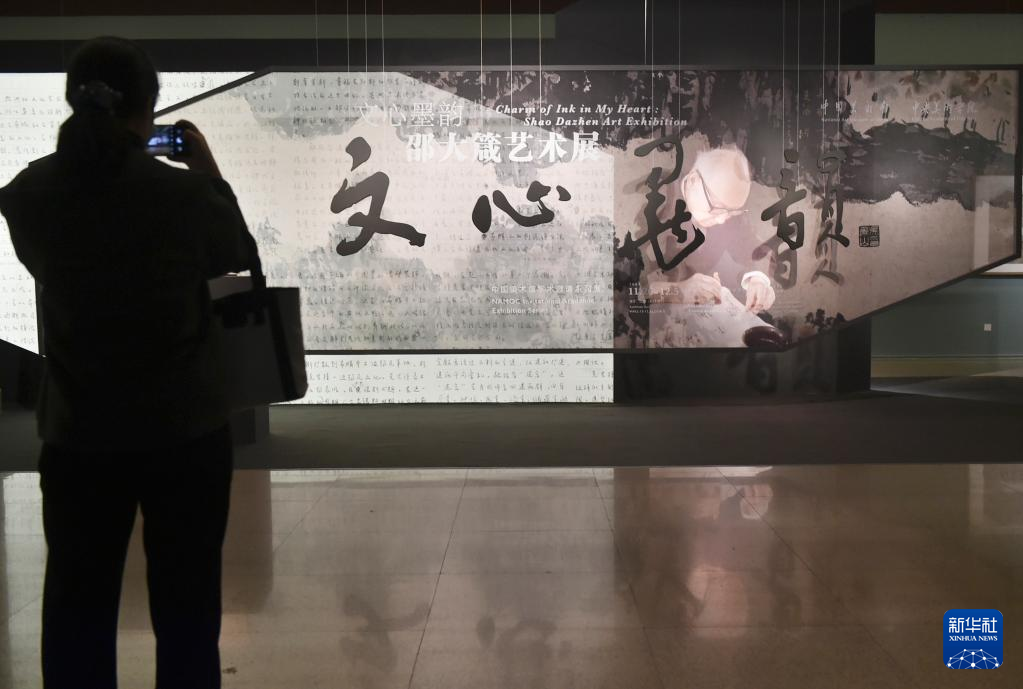 11月29日,参观者在中国美术馆参观展览。当日,由中国美术馆、中央美术学院共同主办的“中国美术馆学术邀请系列展:文心墨韵——邵大箴艺术展”在北京中国美术馆开幕,展览展出反映邵大箴美术研究成果的文献资料130余件,以及近年来创作的书画作品100余幅。新华社记者 鲁鹏 摄