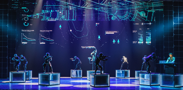 剧中全比例仿真军用汽车、多组威亚等使用,都极大增强了剧目的可看性,尤其是在部队已使用了VR等现代电子信息技术模拟实战训练环境的情况下,本剧设置了虚拟游戏桥段,其中借助了声光电以及道具设计凸显高科技感与时尚感;在音乐方面,辽阔、豪迈的秦腔净角花音的使用,构成了一个荒诞又玄妙的情境,这些都有利于与青年人产生共鸣,给观众带来极致的视听体验。