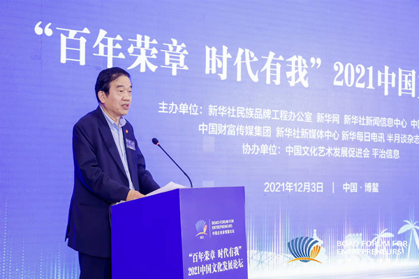 新华网海南博鳌12月3日电(伊媛) 12月2-5日,由新华社民族品牌工程办公室、新华网、新华社新闻信息中心、中国经济信息社、中国财富传媒集团、新华社新媒体中心、新华每日电讯、半月谈杂志社主办,贵州茅台总协办的2021中国企业家博鳌论坛在海南博鳌举行。3日下午,作为论坛组成部分,“百年荣章 时代有我”2021中国文化发展论坛成功举办。中国书法家协会名誉主席、全国政协书画室副主任、中央文史研究馆馆员苏士澍出席论坛并致辞。