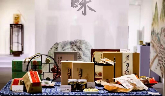 金华非遗会客厅·金华非遗精品展以“婺风遗韵”为主题,整个展厅布置了“金华有艺”“金华有味”“金华有戏”三大专区,分别以“婺·语”“风·华”“遗·珍”“韵·致”四个版块展示了人文底蕴深厚的金华、工匠精神传承的金华、香气滋味远播的金华、婺剧至美传世的金华,尽显一场视觉与味蕾的文化盛宴。其中展示了婺州窑陶瓷烧制技艺、金华火腿腌制技艺、东阳木雕、婺州举岩茶制作技艺、浦江麦秆剪贴画技艺等34项富有地域特色、独具匠心匠艺的金华代表性非遗项目,以及古婺窑火陶瓷文化有限公司、三溪堂药业有限公司、寿仙谷药业有限公司、楼师傅传统糕点有限公司等35家金华优秀文旅企业的非遗产品,展品计113种近200件。展厅以山水墨韵为主基调,清丽高雅,力显城市人文气息,通过实物和造景等多元呈现金华非遗之美好。