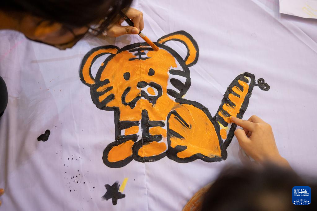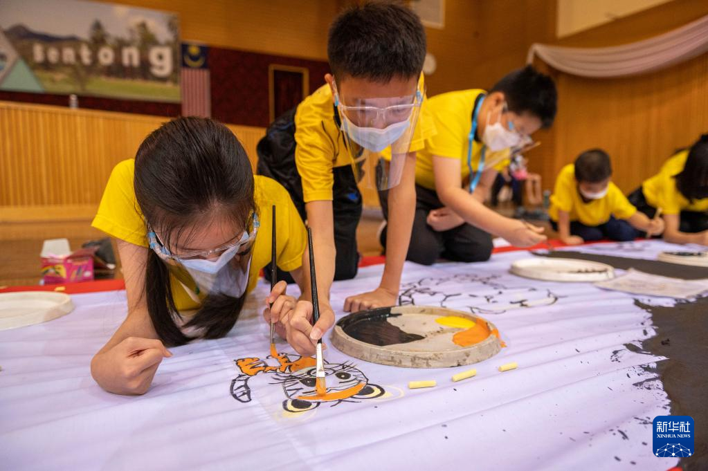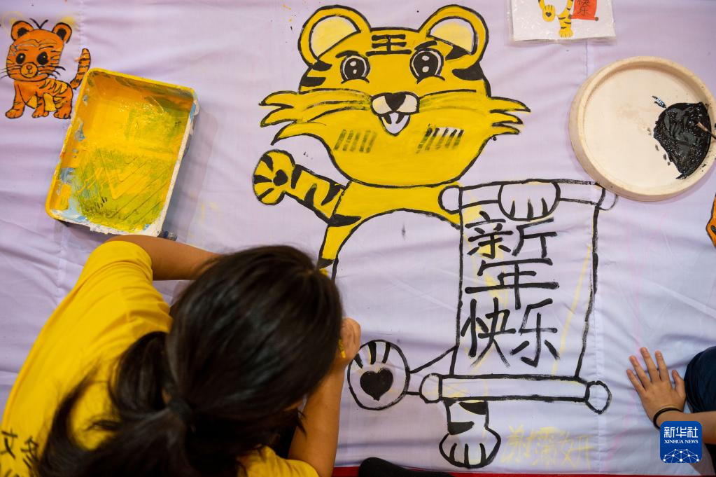 12月26日,学生们在马来西亚彭亨州文冬创作老虎主题年画。