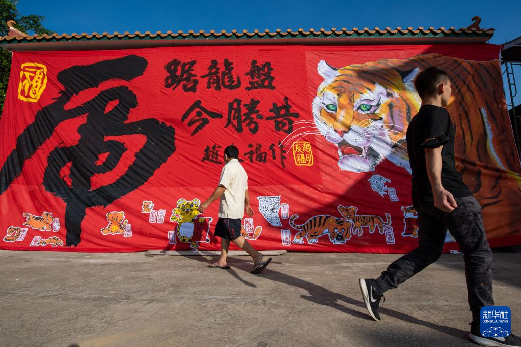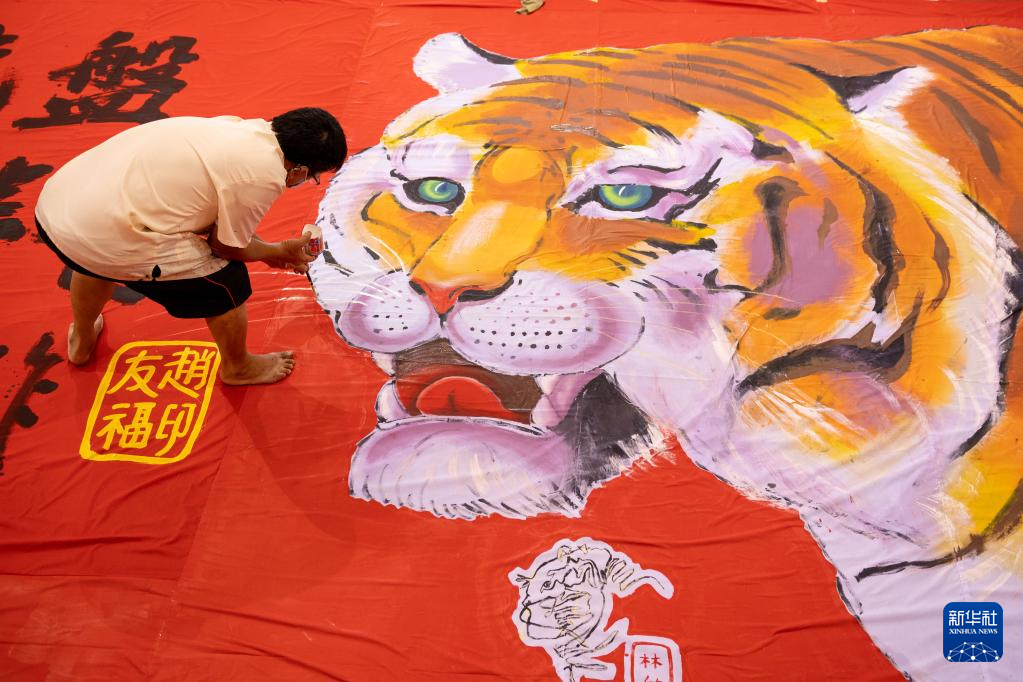 为迎接农历虎年的到来,文冬当地一家华人团体邀请画家和学生一起创作了一幅11.5米长、4.5米宽的老虎年画。