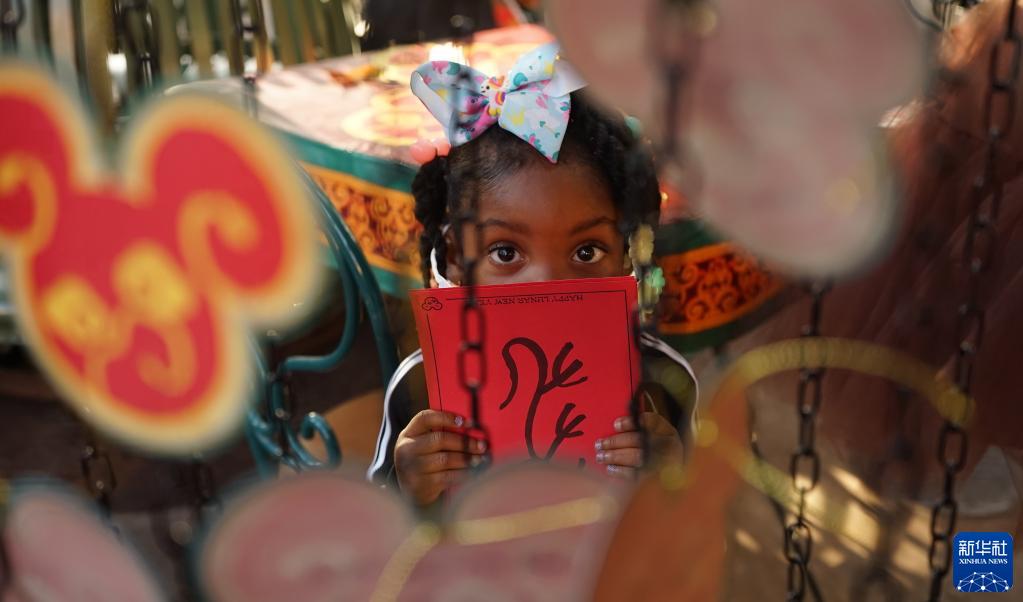 来自加州南部圣迭戈市的小伙子洛佩斯直接穿上刚购买的红色春节服饰,比划着拳脚与跳跳虎玩偶合影留念,他衣服背后的“金虎闹春”四个金色汉字熠熠生辉。洛佩斯在接受新华社记者采访时说:“我不会中文,但我喜欢不同文化带来的感受。”