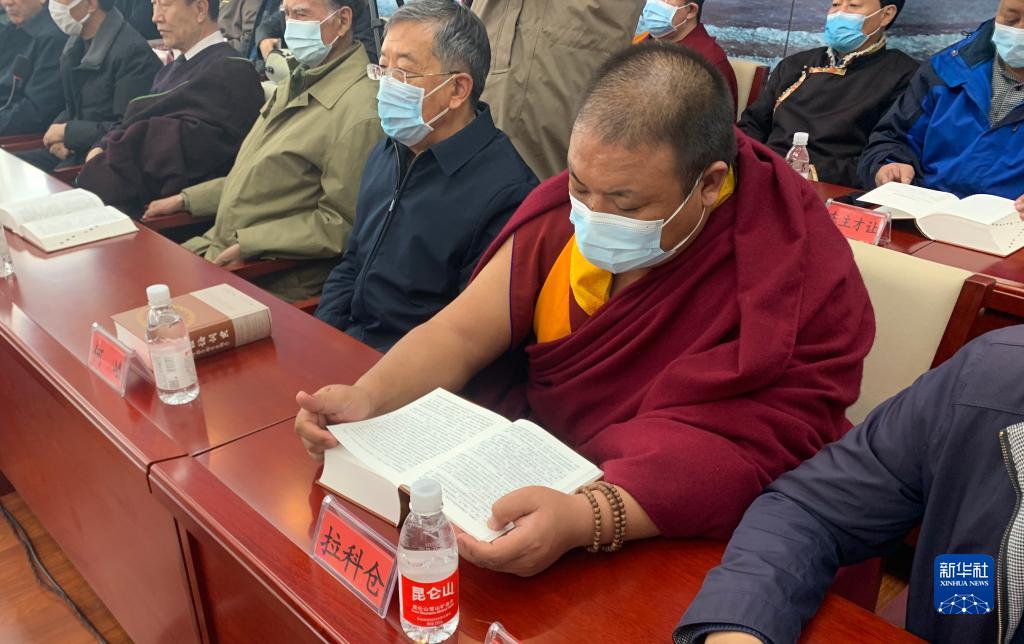 这是汉藏词汇对照版《现代汉语词典》出版发行座谈会现场(1月26日摄)。新华社发(青海省民族宗教事务委员会供图)