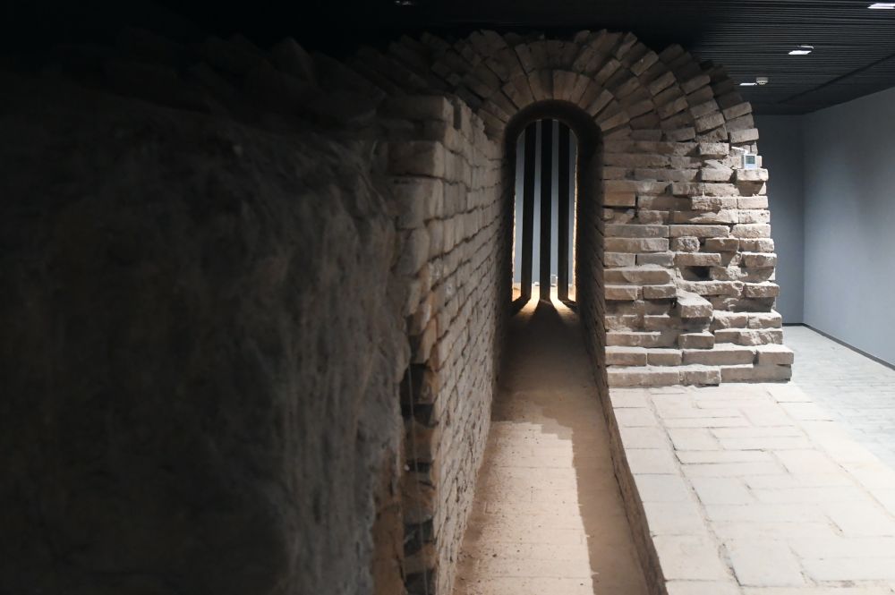 ↑西安唐皇城墙含光门遗址博物馆内展示的过水涵洞遗址