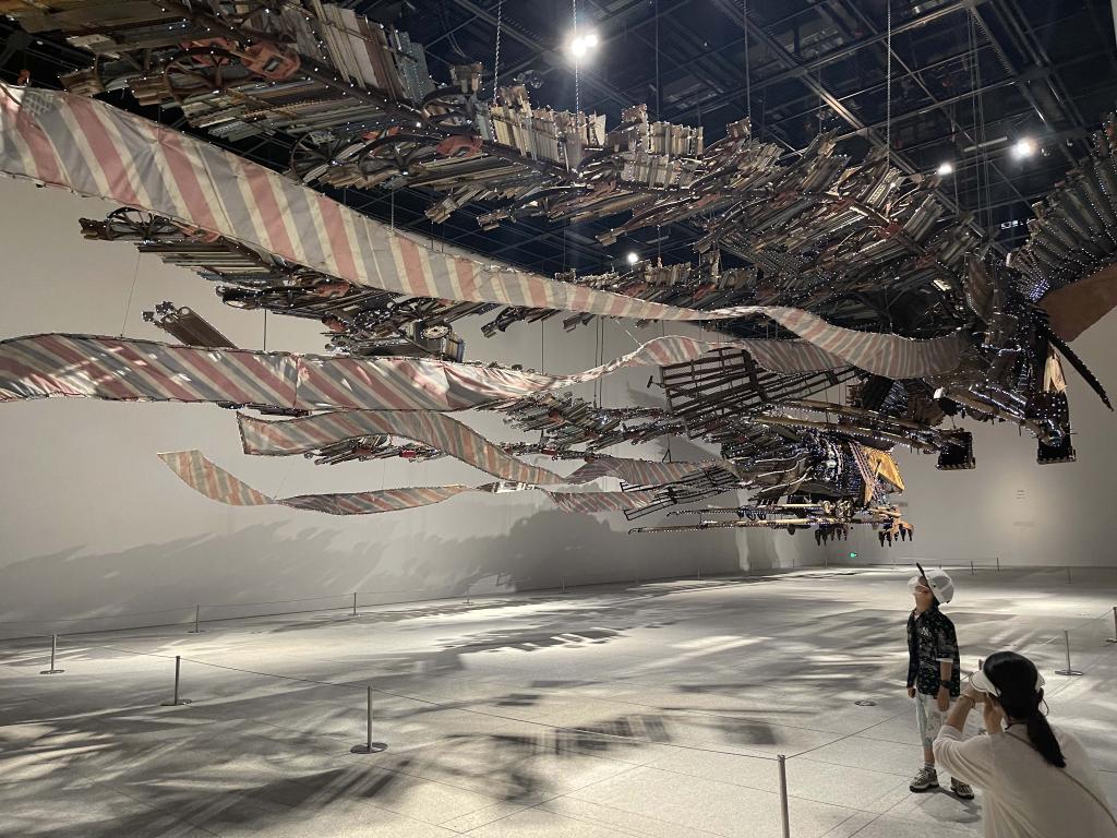 7月1日,浦东美术馆正在一楼中庭布展大型艺术装置,同时筹备英国泰特美术馆的最新大展。新华社记者孙丽萍摄