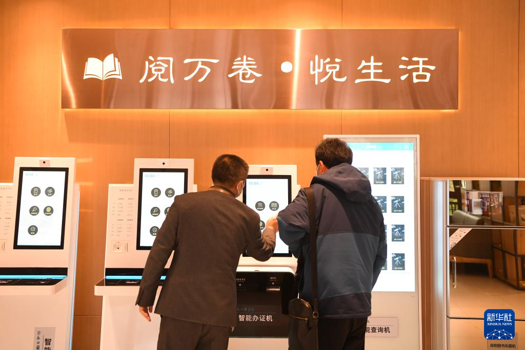1月4日,重庆永川图书馆新馆工作人员(左)在帮助读者办理图书借阅证。
