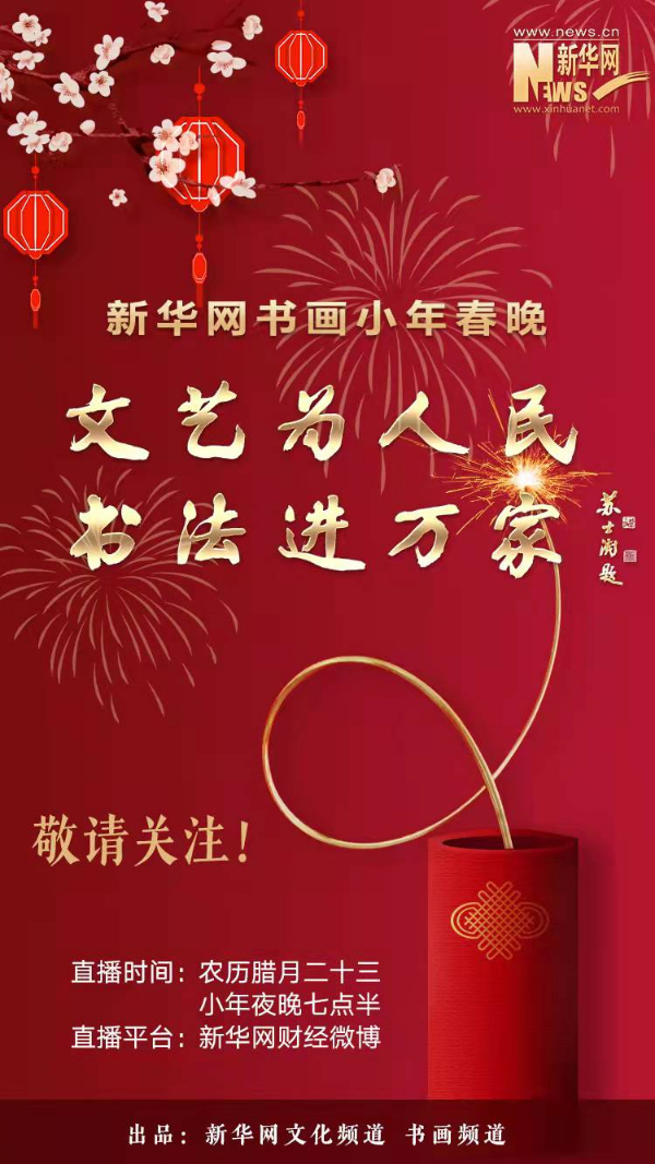 1月25日(农历腊月二十三)“小年夜”当晚19:30,“文艺为人民 书法进万家”新华网书画小年春晚将在@新华网财经 官方微博上线直播。