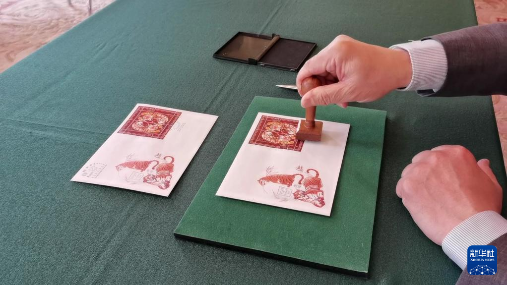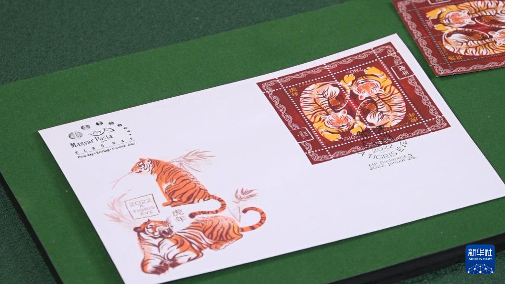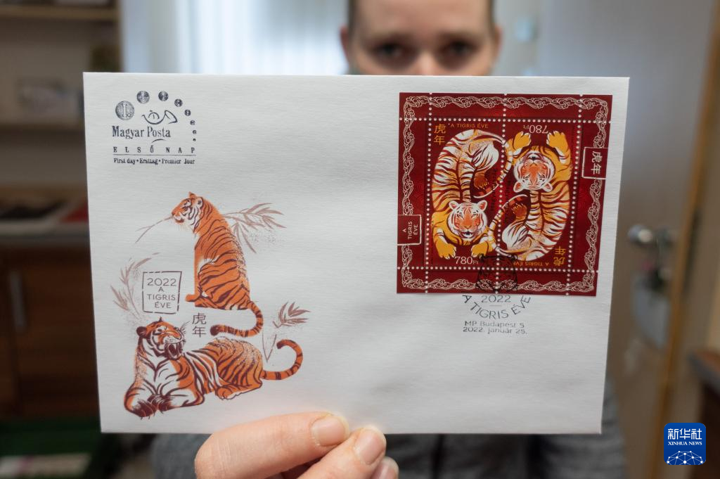中国驻匈牙利大使馆、匈牙利资产管理不管部、匈牙利邮政局与布达佩斯中国文化中心25日共同在线举行中国农历虎年生肖邮票首发式。此次发行的虎年生肖邮票由平面艺术家绍伊科-拜尔陶·阿格奈什设计,共发行2万枚小型张,每枚小型张由2枚邮票构成,呈现一对首尾相连的腾跃之虎。