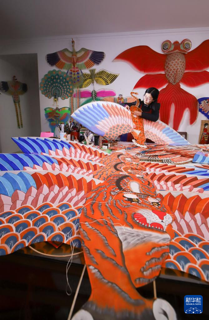 1月25日是北方小年,山东潍坊寒亭区杨家埠村的风筝、年画艺人们赶制年画和各类风筝,喜迎即将到来的虎年春节。