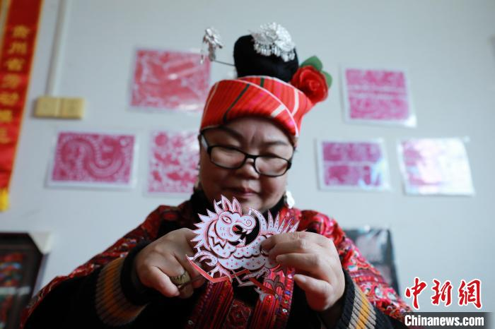 中新网贵州剑河2月4日电 题:贵州苗族剪纸迎“立春” 巧手剪出幸福来