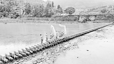 浙江省温州市泰顺县仕阳镇的仕水溪上,延伸排布着223齿仕水碇步,碇步犹如琴键在水面排开。每逢春节等重要节日,这里都能看到一条“龙”,在碇步上“翻飞回转,进退腾挪”。
