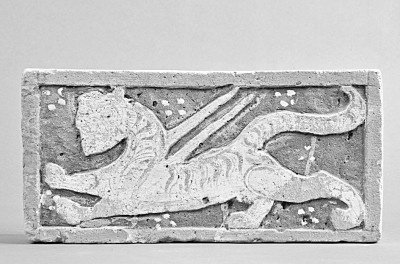敦煌博物馆馆藏西晋白虎雕刻彩绘砖。受访者供图