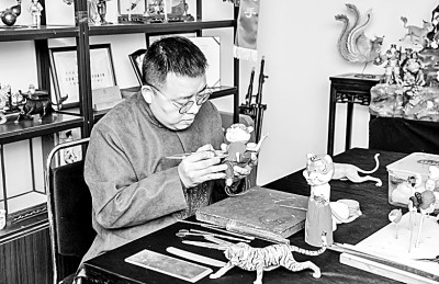 卫兴安为虎年春节创作面塑作品。孙学起摄/光明图片