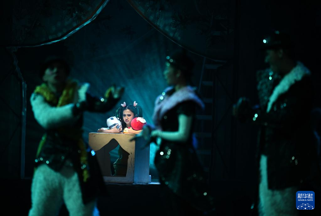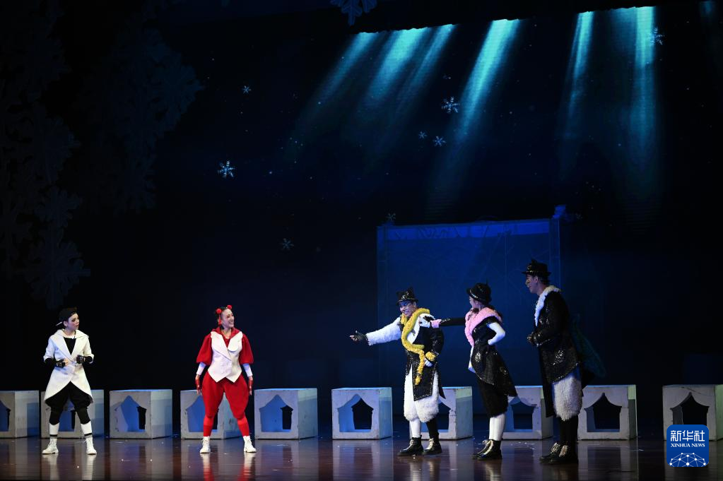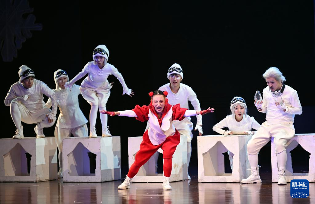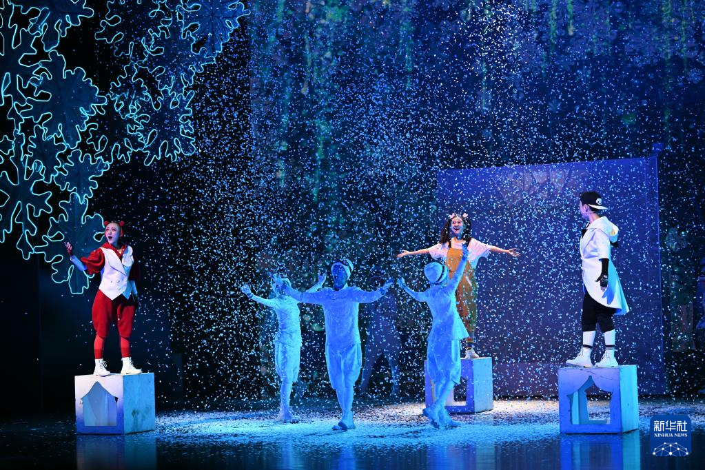 2月12日,演员在儿童音乐剧《冰墩墩雪容融之冰雪梦》中表演。 新华社记者 金良快 摄