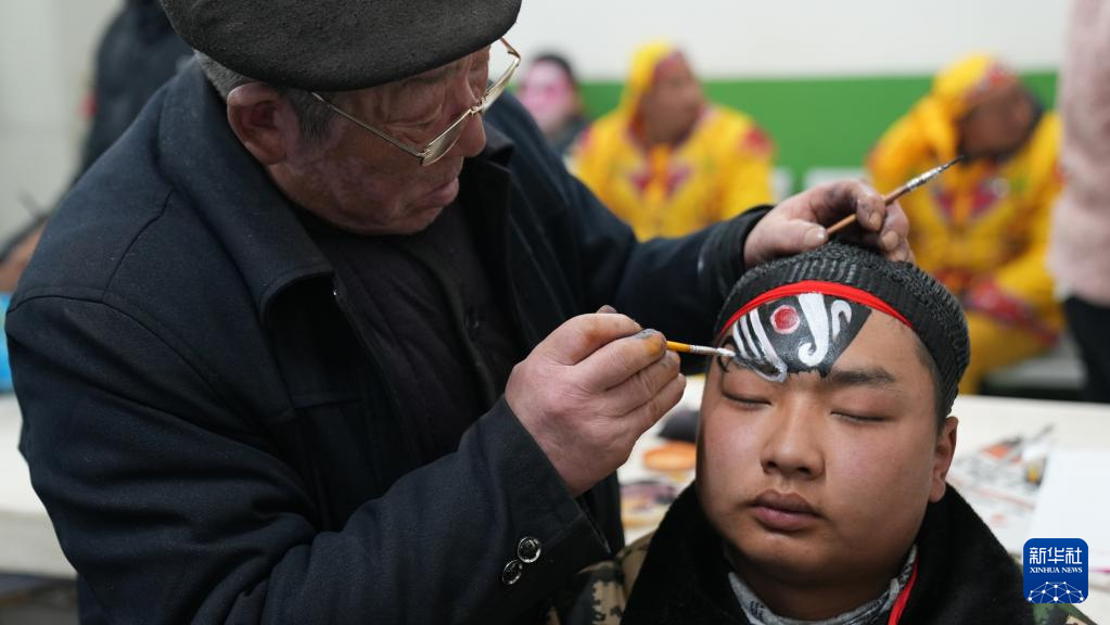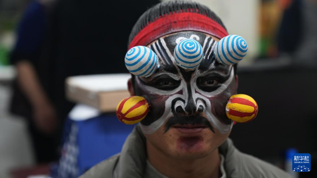 “陇州社火”艺人独创的疙瘩脸谱 新华社记者赵英博 摄